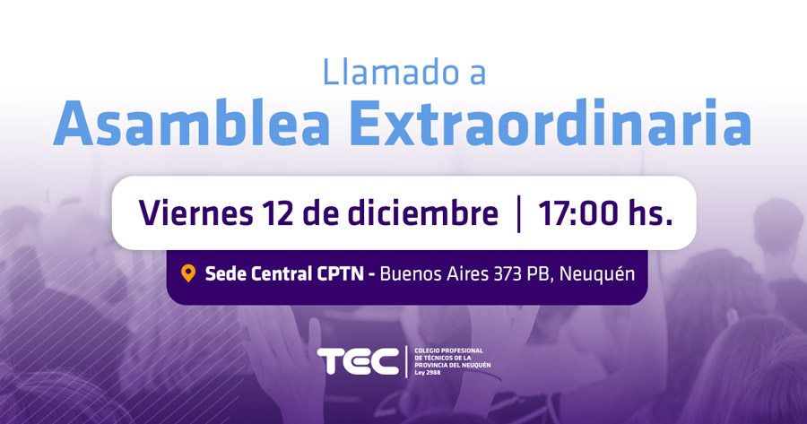 Convocamos a los profesionales técnicos matriculados a participar de la próxima Asamblea Extraordinaria