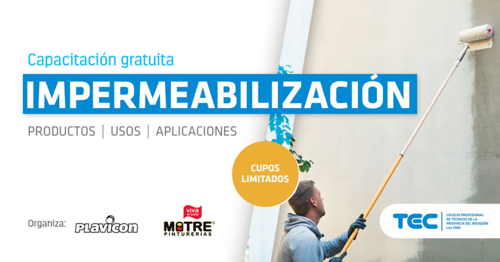 Invitamos a técnicos matriculados y publico en general a capacitación gratuita de la marca de pinturas Plavicon sobre “ IMPERMEABILIZACION”, productos usos y aplicaciones.