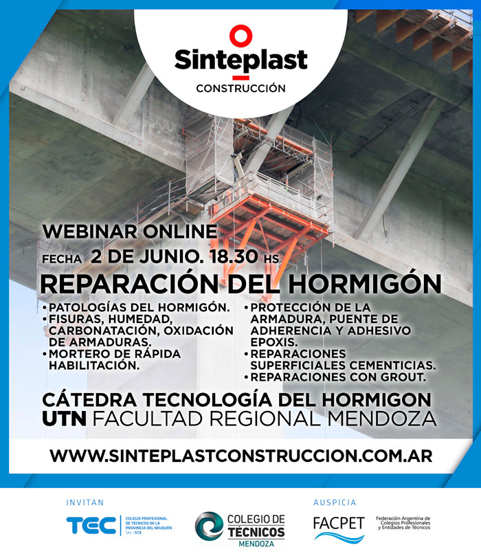 Webinar gratuito "Reparación del Hormigón" Invitamos a participar del webinario gratuito "Reparación del Hormigón", a realizarse este miércoles 2 de junio a las 18:30hs. No requiere inscripción previa. Ingresar al Webinar 2021-06-01T13:31:11-03:00Categorías: Capacitación, Portada|Etiquetas: Arquitectura y construcción, Capacitaciones| Compartí esta noticia FacebookXLinkedInWhatsApp Artículos relacionados Convocatoria para cubrir cargo de dirección del Centro de Formación Profesional del Casa Salesiana San José Obrero 17/04/2026 Autoridades del Colegio se reunieron con el Gobierno Provincial en el marco del plan de regionalización 09/04/2026 Capacitación teórica y práctica: Resolución 900/15 de la SRT 07/04/2026