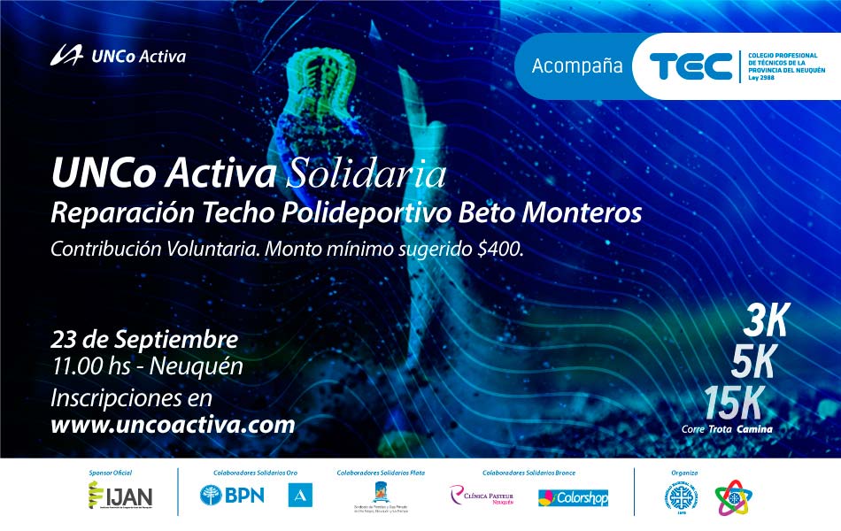 El CPTN acompaña el evento deportivo UNCO Activa Solidario organizado por la Dirección de Deportes y Recreación y el Programa de Compromiso Social Universitario de la Universidad Nacional del Comahue.