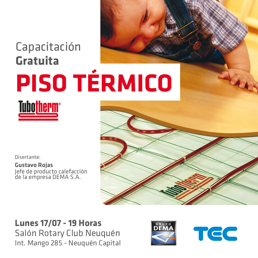 Convocamos a la capacitación técnica de la empresa DEMA S.A, gratuita para profesionales matriculados del CPTN. En la misma aprenderemos sobre el sistema de piso térmico Tubotherm.