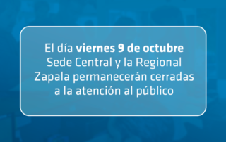 08Oct Este viernes 9 de octubre no habrá atención presencial en Sede Central y en Regional Zapala en virtud de las disposiciones del Gobierno Provincial