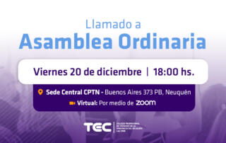 19Dic Convocamos a los profesionales técnicos matriculados a participar de la próxima Asamblea Ordinaria